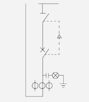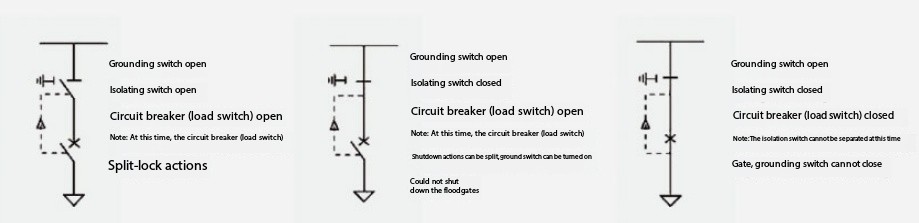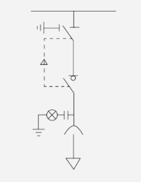 Elektrikatkestus: kaitselüliti (koormuslüliti) → lahklüliti → maanduslüliti → kaitselüliti (koormuslüliti) on koormatud (avatud) ja uks on pimendatud.