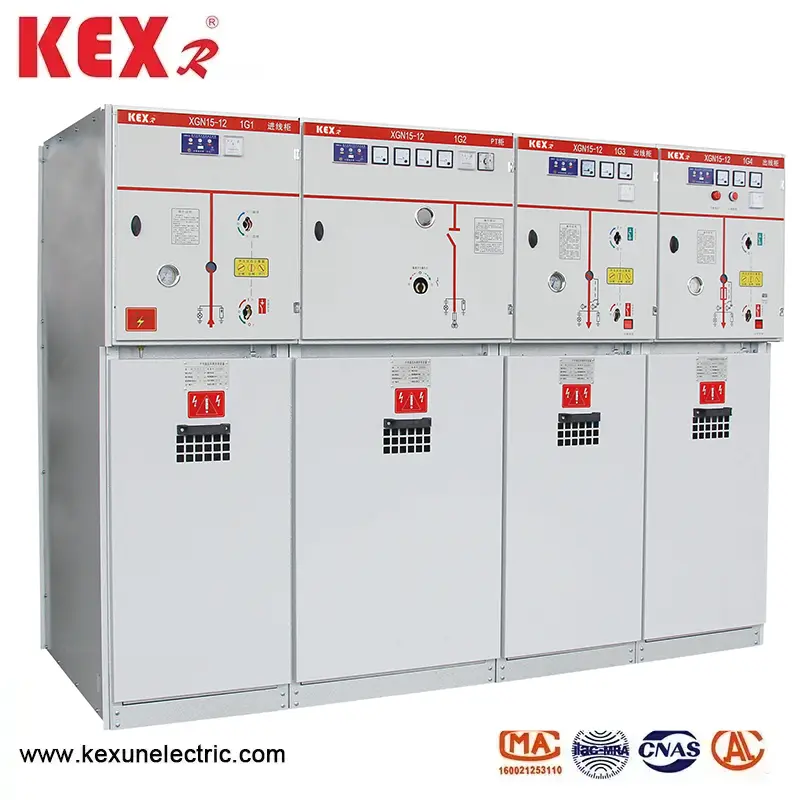 XGN15-12 Gaasi isoleeritud lülitusseadmed, mille Hiinas on jõuülekande- ja levitamisseadmete tarnija KEXR, on uus põlvkond kompaktseid ja laiendatavaid metallist suletud lülitiseadmeid, mille peamine lüliti ja õhu isolatsioon on kogu kapis väävli heksafluoriidi lüliti ja õhu isolatsioon. Mudel: XGN15-12 Bränd : kexr