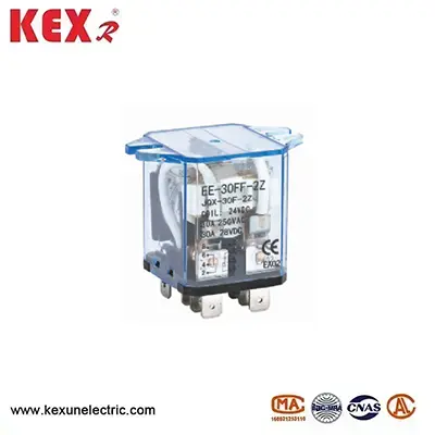 Kexun Electric Co toodetud uus energiaallika relee on Hiina Factory elektromagnetiline lülitusseade kõrgepinge ja suure vooluahela juhtimiseks, mis suudab kontrollida suure võimsusega koormate (näiteks vahelduvvoolumootorite ja küttekehade) sisselülitamist vähese energiatarbega signaalide kaudu (näiteks madala pingega DC). Mudel: 53F Bränd : kexr